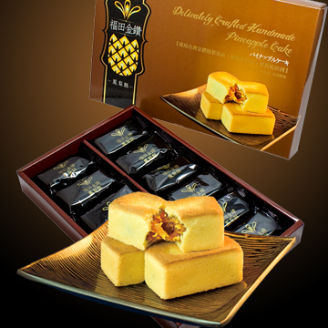 堅持古法手工製作,將金鑽鳳梨果肉細細熬煮,並採用紐西蘭進口安佳奶油及嚴選麵粉,反覆揉製,精心烘焙,一顆顆如金磚般的金鑽鳳梨酥美點,完美呈現。